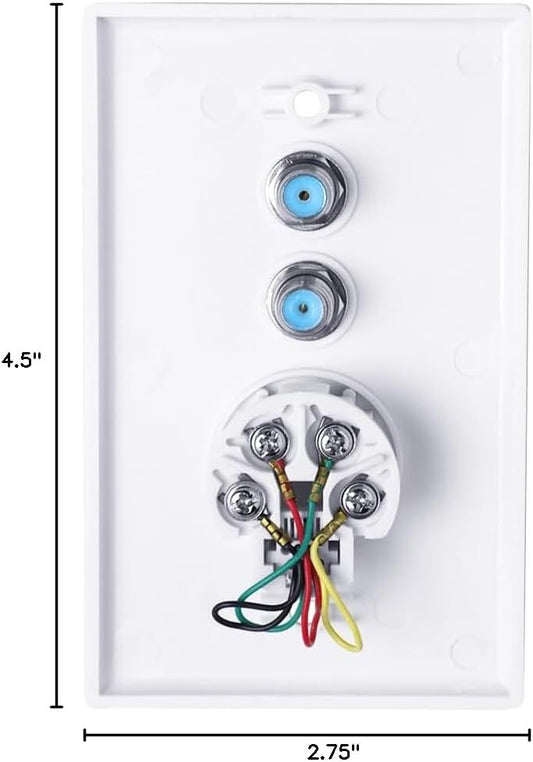 Wall Plate w/Dual 3.0Ghz F-81 and Phone Connector (White)-WP/F81/3GHZ/TEL.