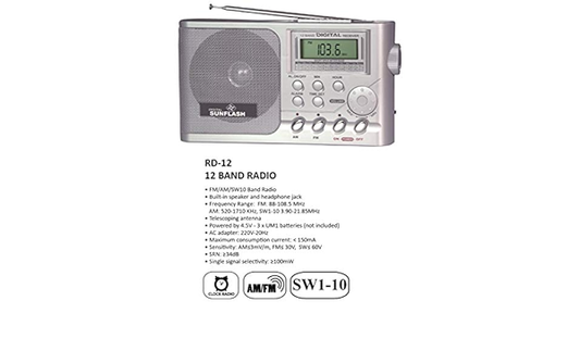 SUNFLASH DIGITAL AM/ FM /SW AC/DC PORTABLE RADIO RD-12