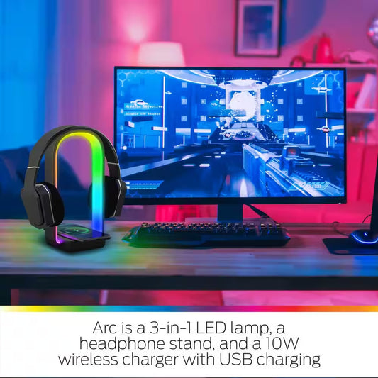 3-In-1 Sound Reactive Multi-Color Arc LED Lamp/Headphone/2 Charging Options
