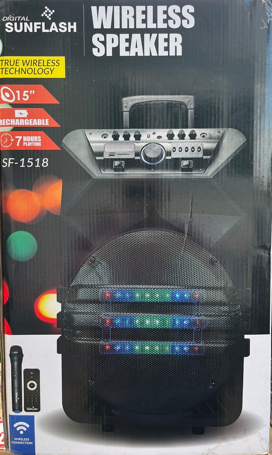 HAUT-PARLEUR BLUETOOTH RECHARGEABLE 15" COMPRENANT 1 MICROPHONE SANS FIL ENTRÉE USB//MICRO SD/AUX