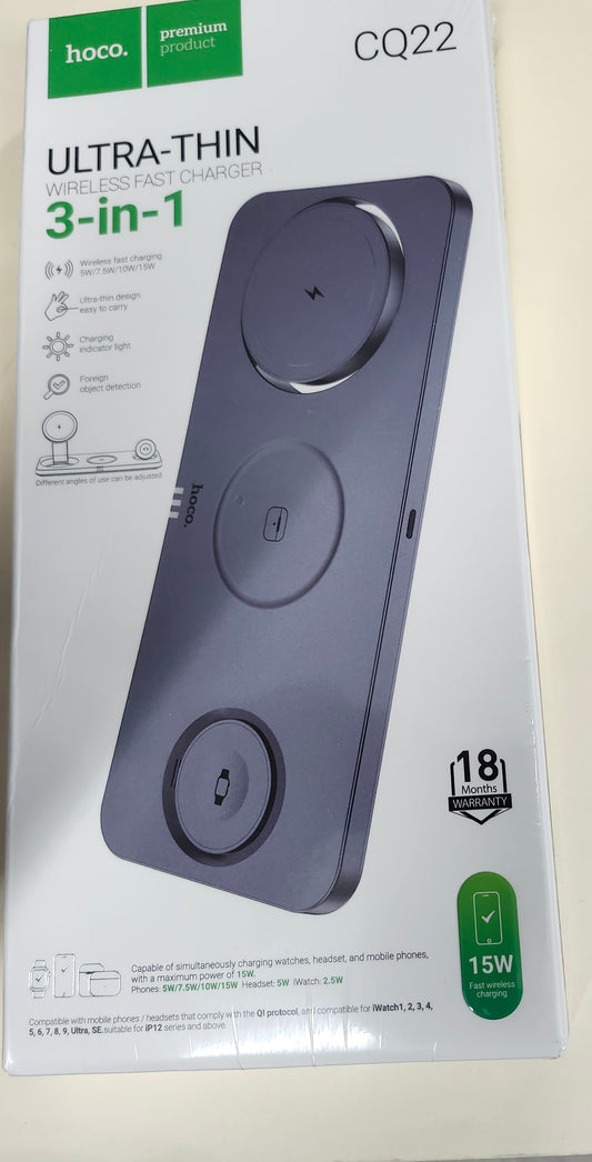 HOCO 3in1 Wireless charging station (Mag Safe) (Phone; Air Pods; Watch) 15W gray (CQ22)