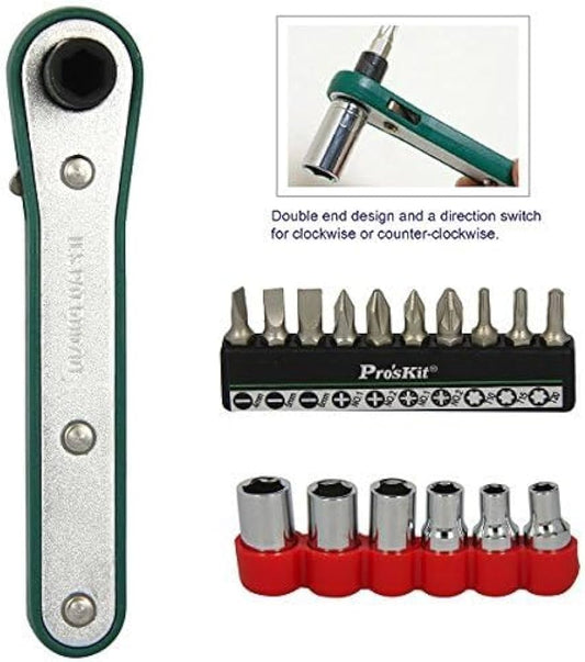 PROSKIT ENSEMBLE DE 17 PIÈCES À CLIQUET ET DOUILLES DÉCALÉES