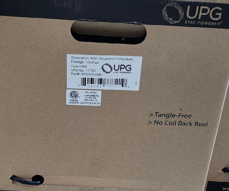 1000ft PLENUM UPG DUAL-SHIELD RG6 COAXIAL CABLE 3Ghz 75 Ohm UL ETL (BLACK&WHITE)