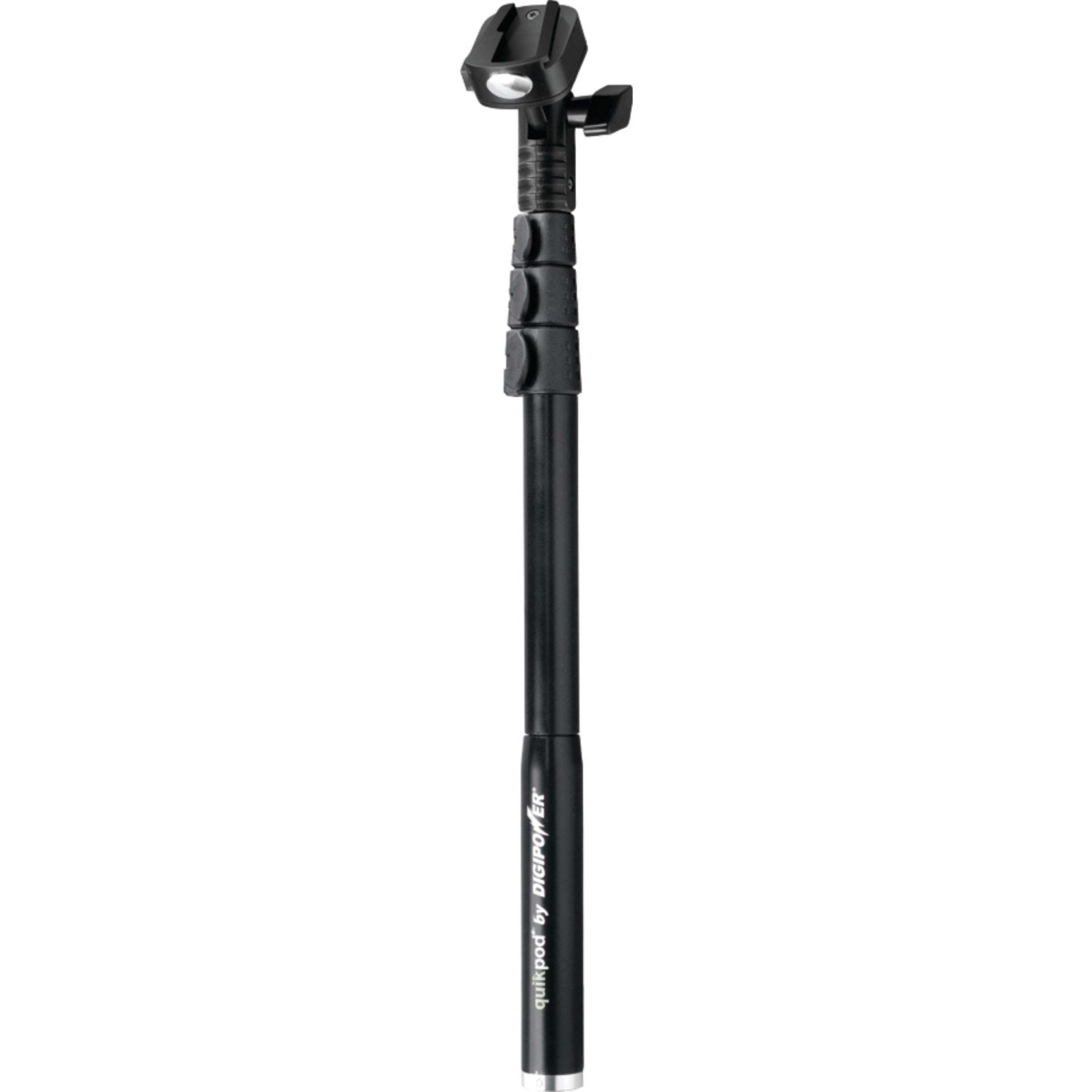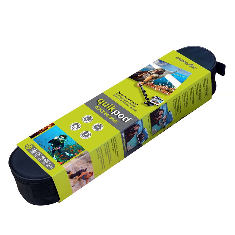 * The Digi power TP-QPXT QuikPod? Extreme allows you to be your own star! . The Quikpod? assists with self portrait shots while participating in extreme sports like scuba diving snow boarding and mountain climbing. If your need for adventure is a little more reserved the QuikPod? is for you as well. The QuikPod TP-QPXT extends from 18 to 53 with built in mirror for overhead shots and self-positioning. Get in the picture wherever you are. Just attach your camera and shoot great self portraits. The TP-QPXT includes mounts for digital cameras DSLR camers camcorders GoPro? cameras and cell phones