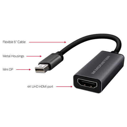 Monster Mini Display Port To HDMI Adapter,Up To 4k Resolution 1080p/1080i/720p