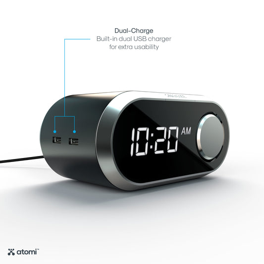AM / FM Clock Radio with Digital Display, with Two Alarms setting, Black