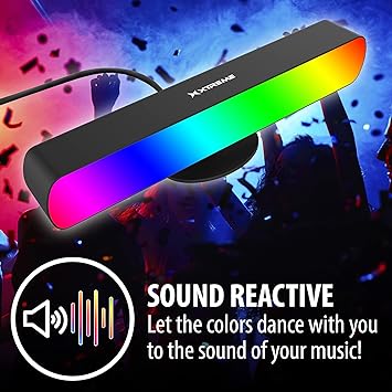 The Xtreme Sound Activated LED Light Bar brings your environment to life with color. with 16 unique colors, 4-color modes and the ability to increase and decrease brightness the color possibilities are endless, Activate Sound Reactive Mode to enable the Light Bar to hear and react to sounds. Let the Light Bar dance with you to the sound of your own music. Adjust your light bar to the upright vertical position or lay it down in the horizontal position. The Light Bar can easily switch between positions to best suit your needs. Use the included IR remote to control your Light Bar's color, brightness and color mode.