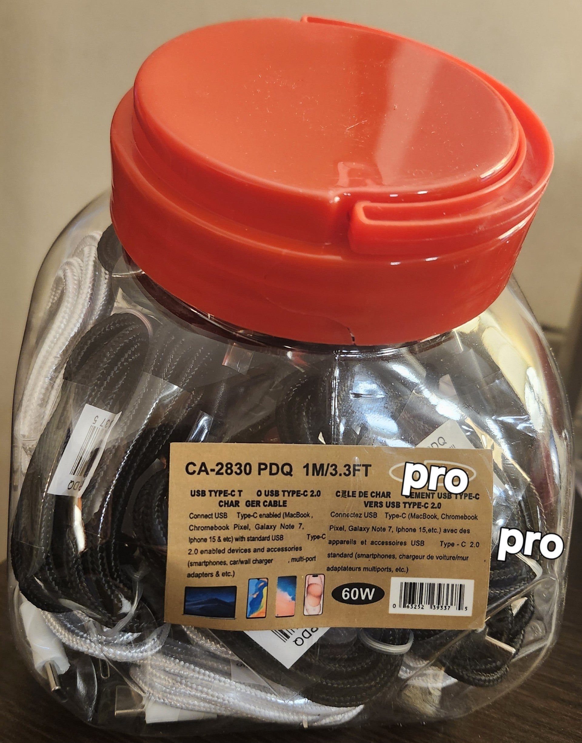 3FT.USB-C TO USB-C BRAIDED CABLE 60W 36PCS PER JAR