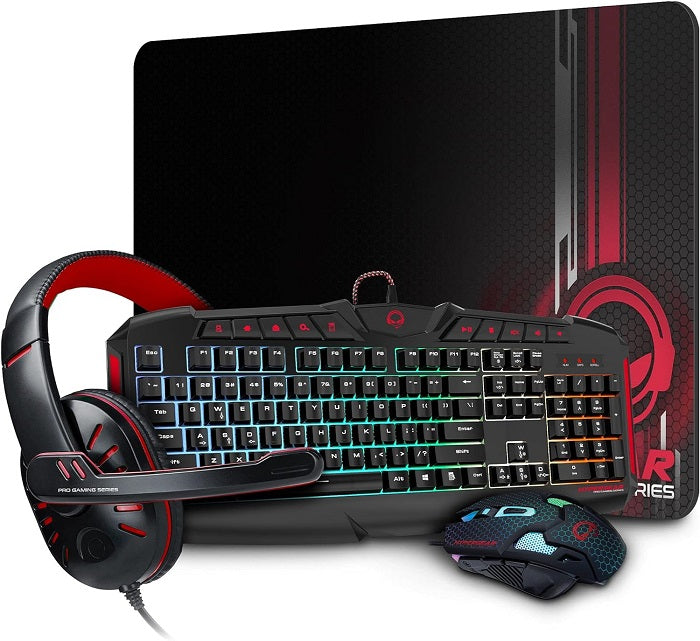 - The 4 in 1 Gaming Set:This Gaming Mouse and Keyboard and around the Head Gaming Headset and Mouse Mat Complete Starter pack all in one great box.