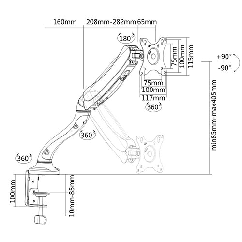 Brateck Single Monitor Interactive Single Counterbalance LCD VESA Desk Clamp and Grommet Mount for 13''-27'' LCD Monitors