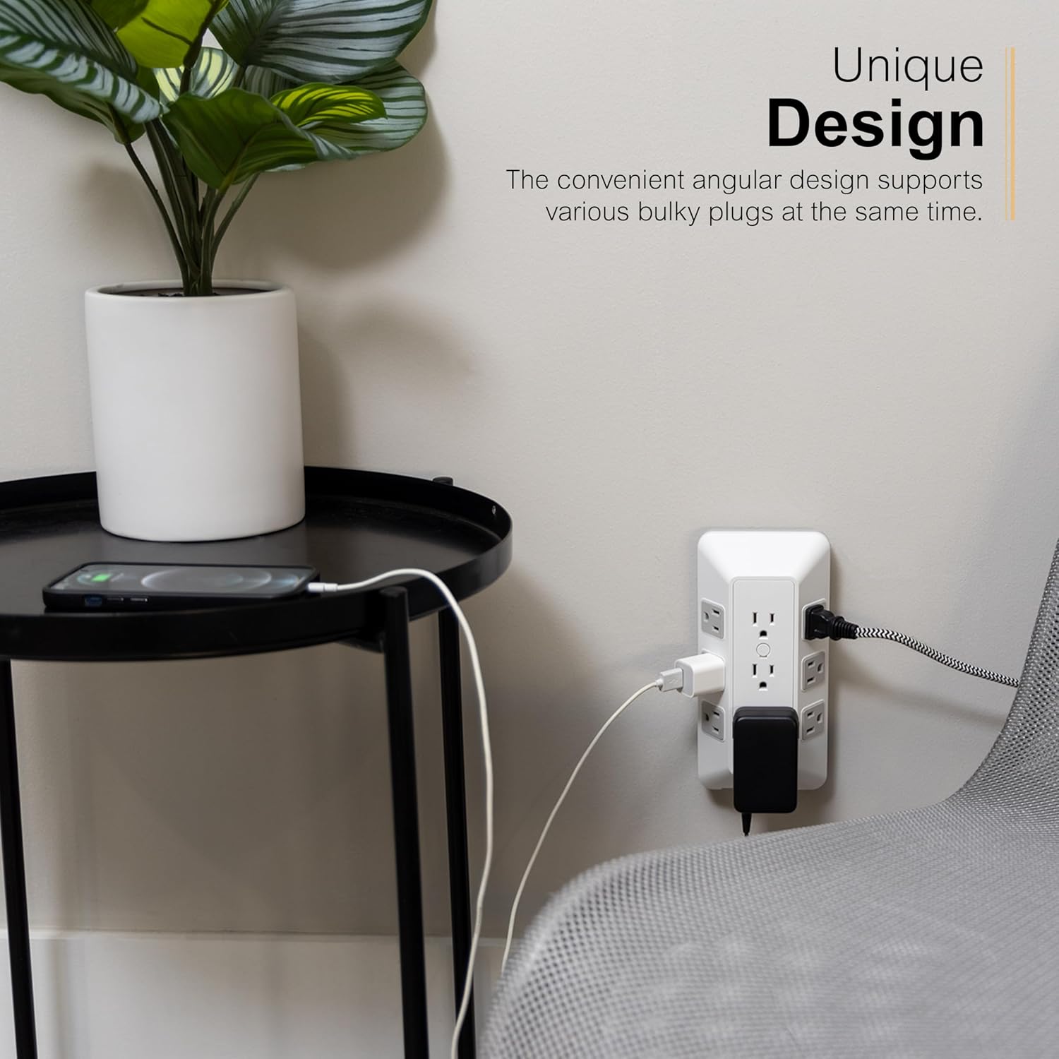 - Compatibility – This tap works with your existing grounded 3-prong, 2-outlet duplex receptacle to create a charging station anywhere in your home, office, bedroom, kitchen, living room or dorm — not suited for GFCI receptacles
