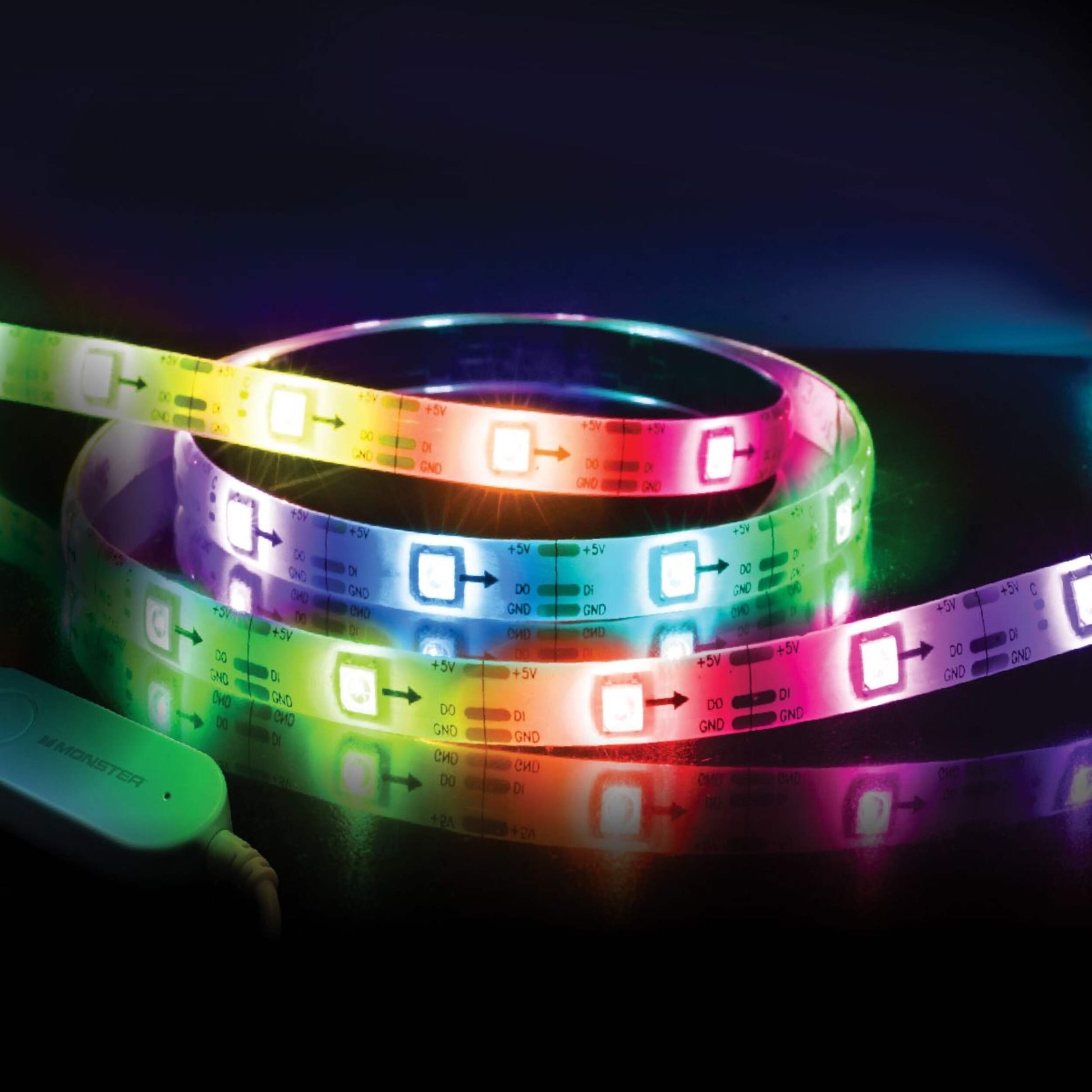 Monster Illuminessence Smart LED Flow RGB-IC LED Strip features individual IC controlled LEDs that allow you to display multiple colours at once
