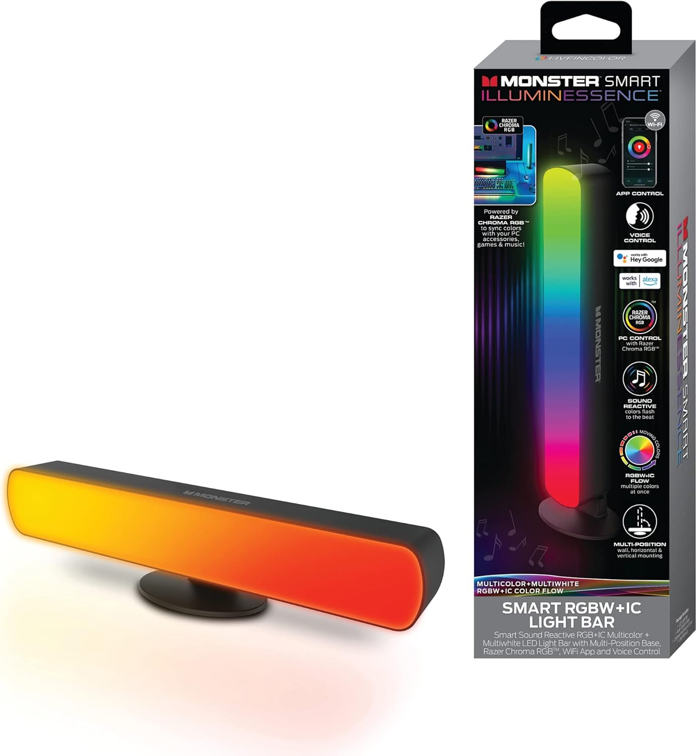 - Downloadable App: Use the Monster Smart App to create customizable multi-white, multicolor and color flow options. App available from Google Play and the Apple App Store