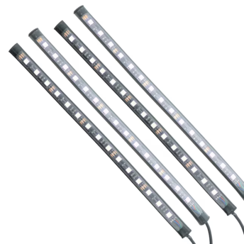 Enhance Your Car Interior With 4 - 10.5'' Customizable LED Strips. Control Colors And Flash Modes With Included Remote. Self Adhesive Backing For Easy Application. Powered With Included 12v Car DC Adapter