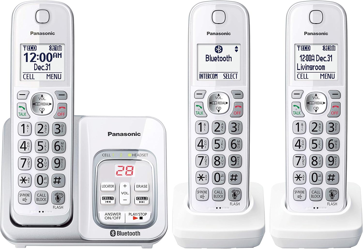 Panasonic DECT 6.0 3 Cordless Handsets Phone with Link-to-Cell, Answering Machine, Call Block, and Talking Caller ID - 3 Cordless Handsets KX-TGD863