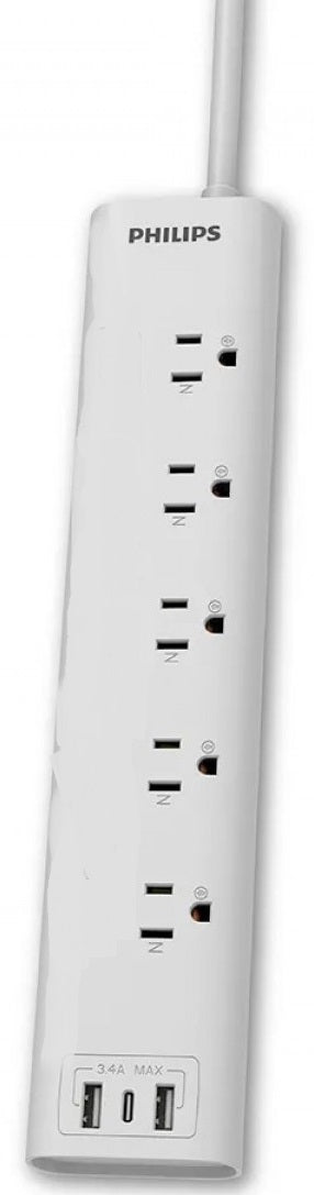 - Philips Power bar 5 AC outlets, 1 x USB-C, 2 USB-A, 1.8m cord