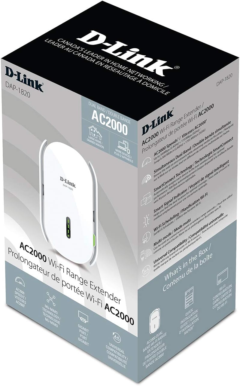 - Fully compliant with Canadian ISED/IC regulations - IC certification-4216A-AP1820A1, HVIN-DAP-1820A1, PMN-DAP-AC2000 Wi-Fi range extender (Open Box)