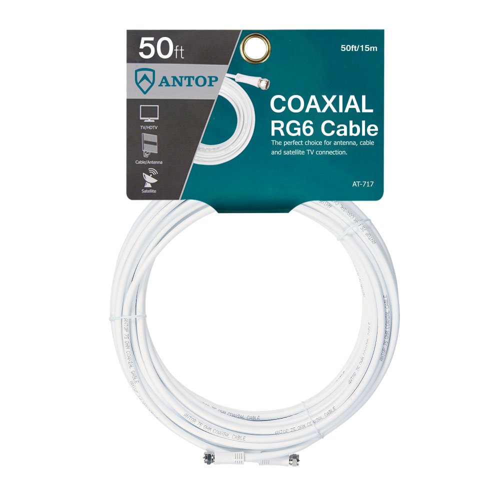 50Ft Rg6 Coaxial Cable Black or White- with F-Male Connectors for Digital Audio Video TV Sattllite Grip Caps