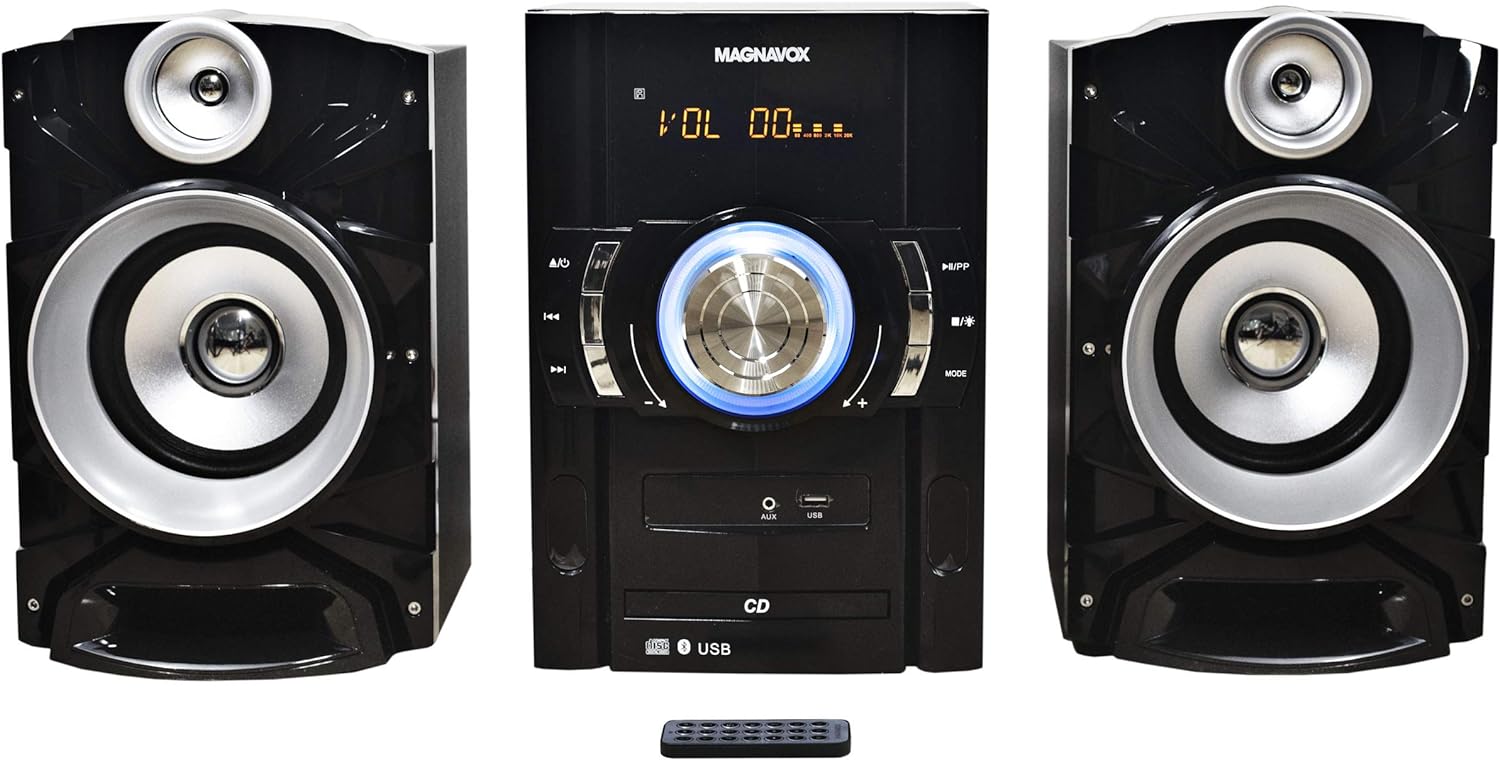 - BLUETOOTH: Magnavox speakers keep the party going come rain or shine. Experience a premium audio experience in your office, bedroom, living area, or kitchen. Connect to your smartphone, tablet or other audio device via Bluetooth or the Aux port to listen to your music, videos or games wherever you go! This Bluetooth speaker system provides premium audio you are sure to appreciate!