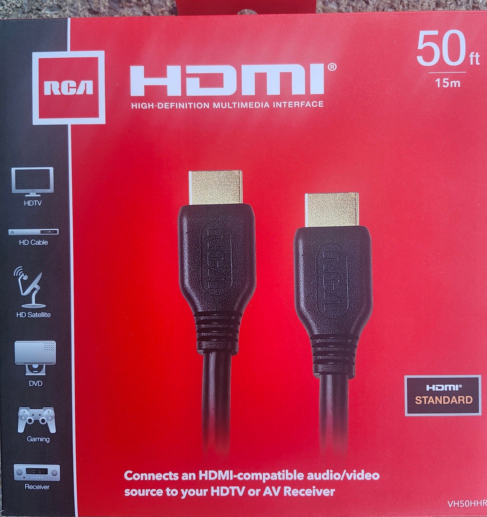 - RCA 50FT. No double image, no flashing screen, TMDS transmission differential signal, aluminum foil ground woven (round) multiple shielding, transmission stability without loss. Large screen projection, office/speech more clear and efficient, automatic synchronization of audio and video, no manual adjustment, enjoy sound vision.
