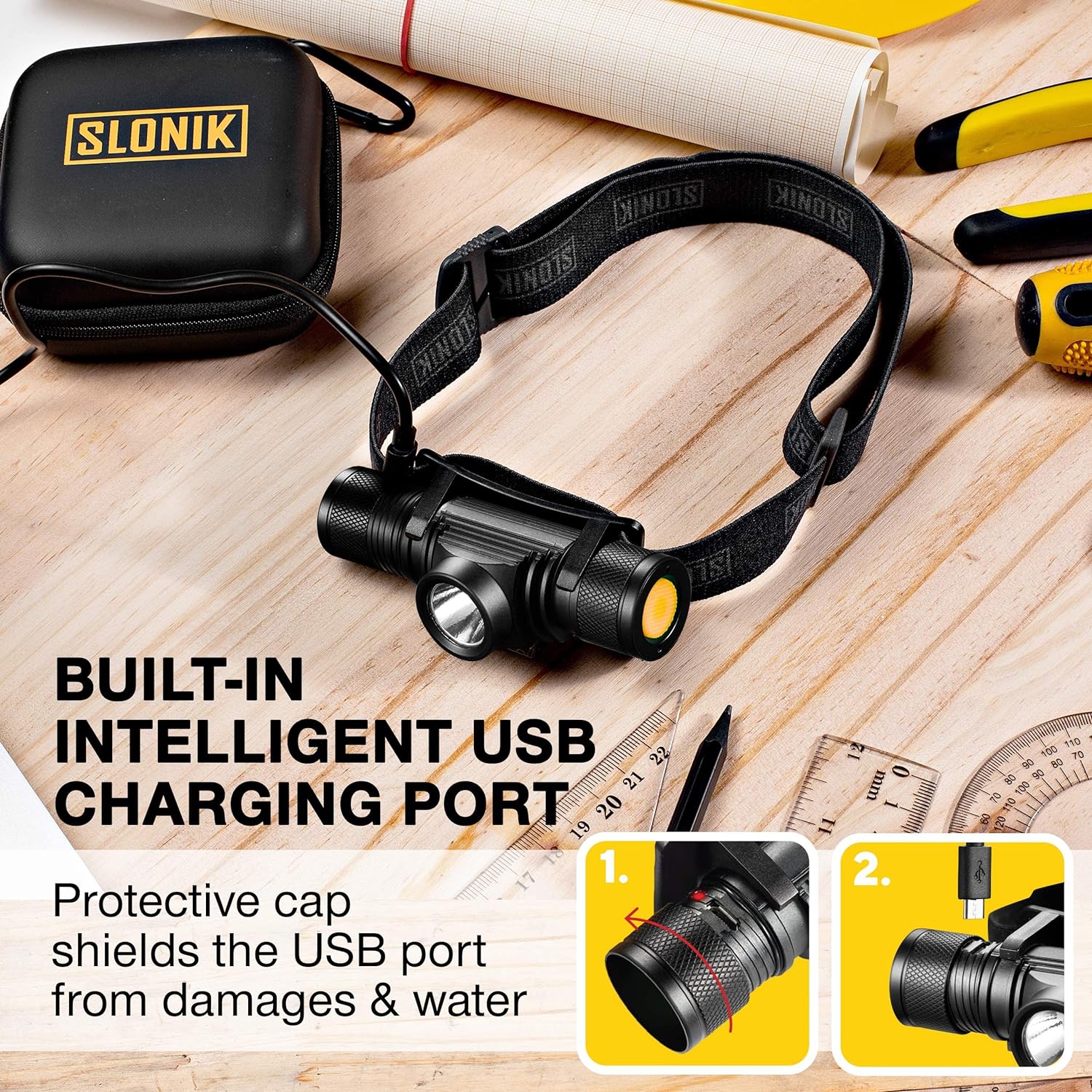 SLONIK LED Headlamp Flashlight - 500 Lumen USB Rechargeable Headlight S10